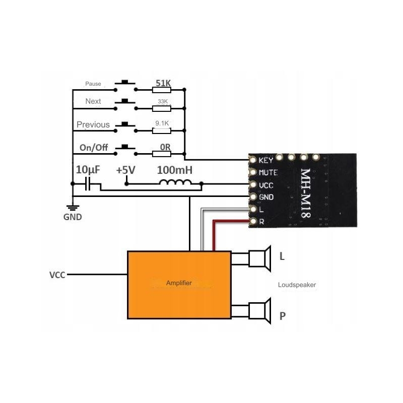 After the module is powered on, the mobile phone searches for the Bluetooth name MH-M18/MH-M28/MH-M38, and can play music after connecting Bluetooth.