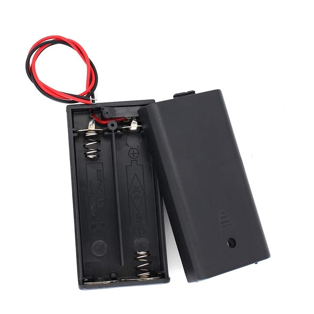 باکس به همراه درب و درپوش و یک عدد کلید خاموش و روشن در پشت باکس----به همراه سیم قرمز مشکی طول 15 سانتی متر در یک طرف از جنس مس----کیفیت مناسب پلاستیک و فنر فلزی و پین های استفاده شده در دو طرف
